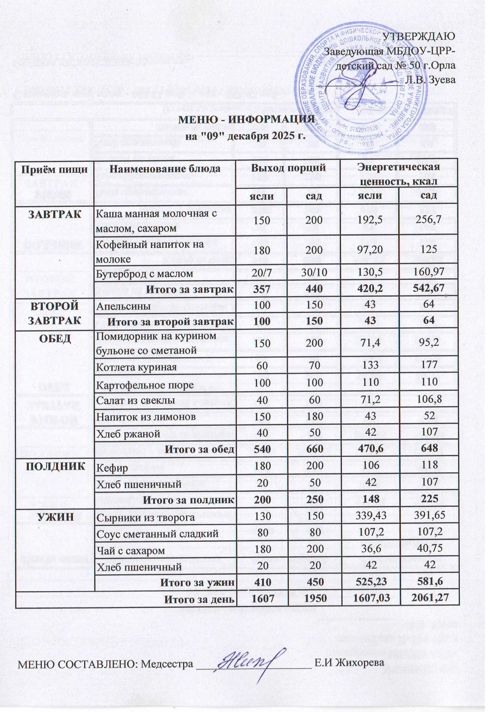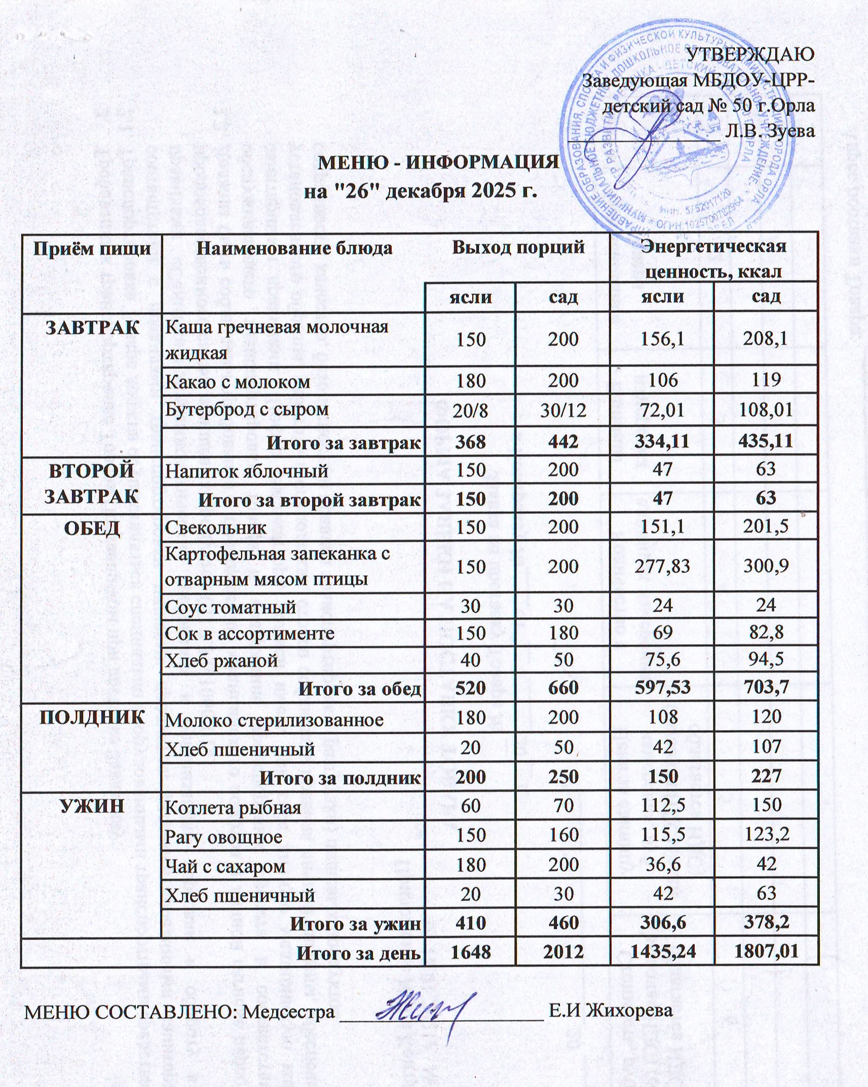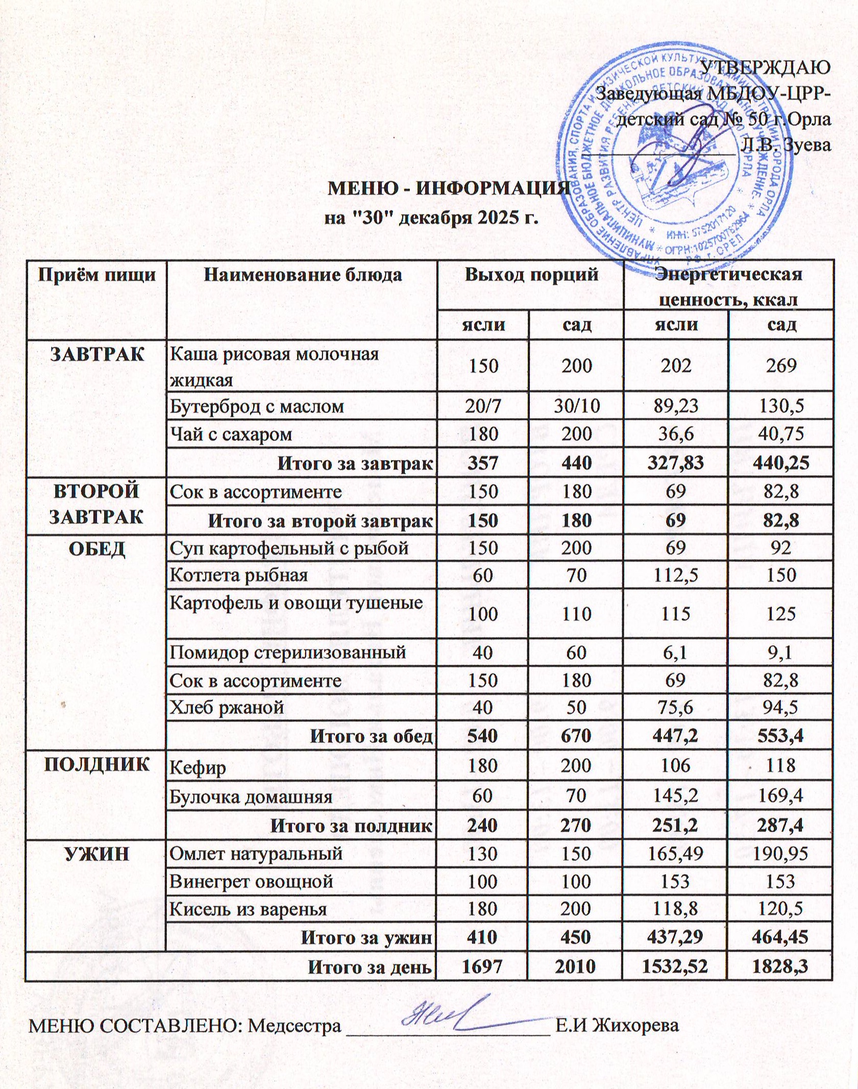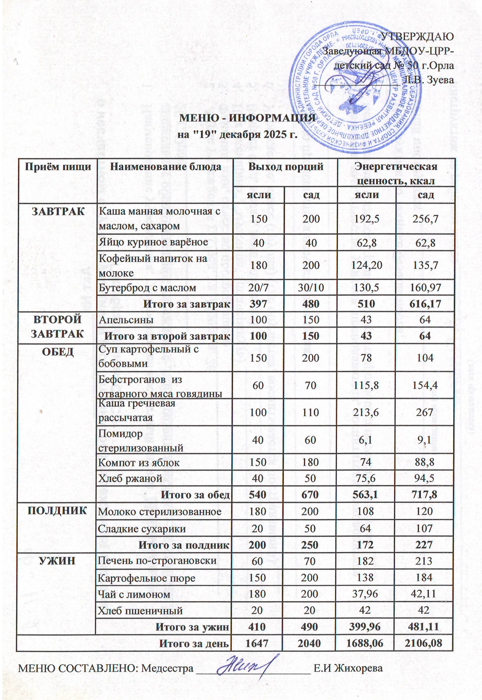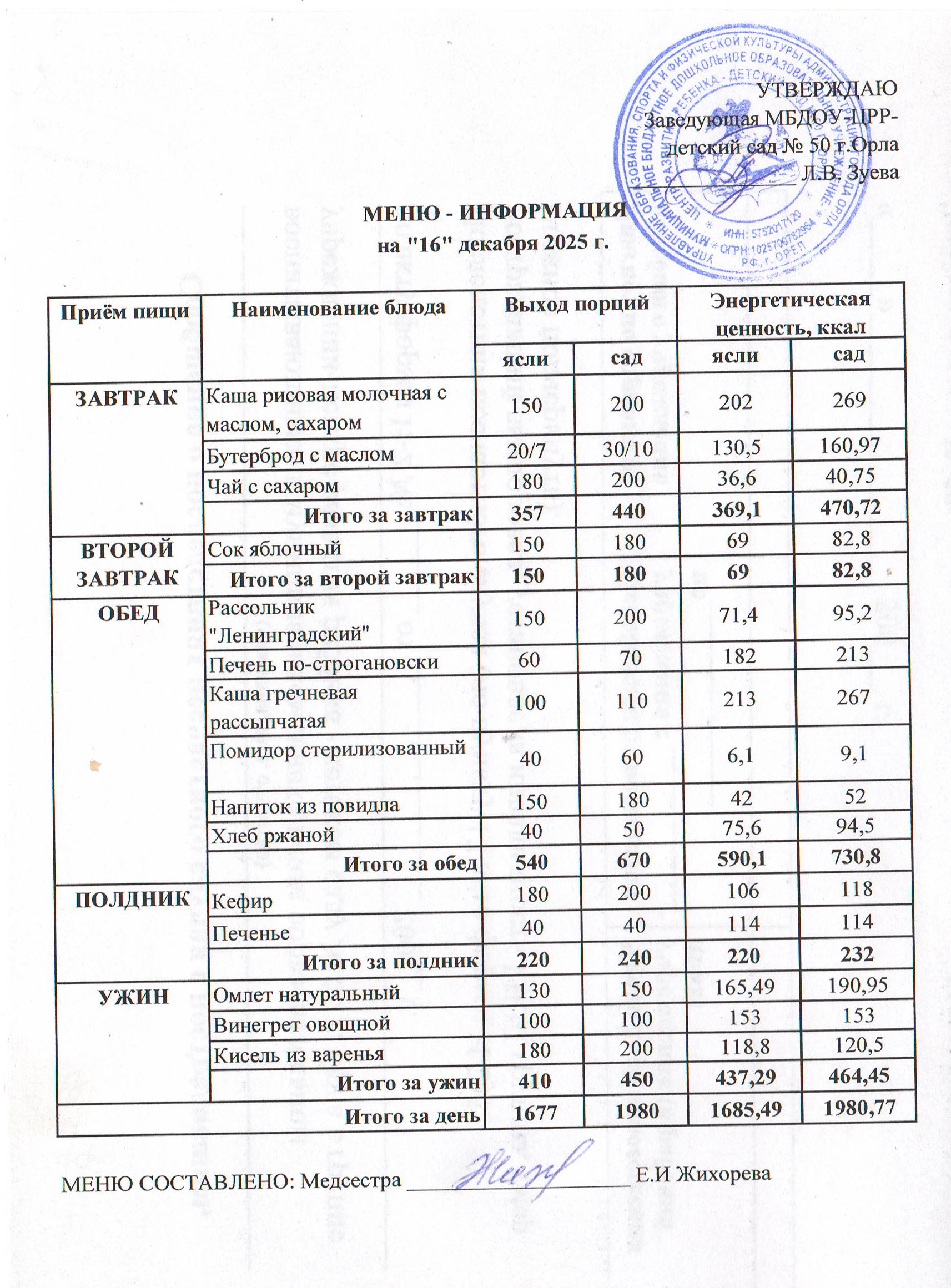 МЕНЮ декабрь: