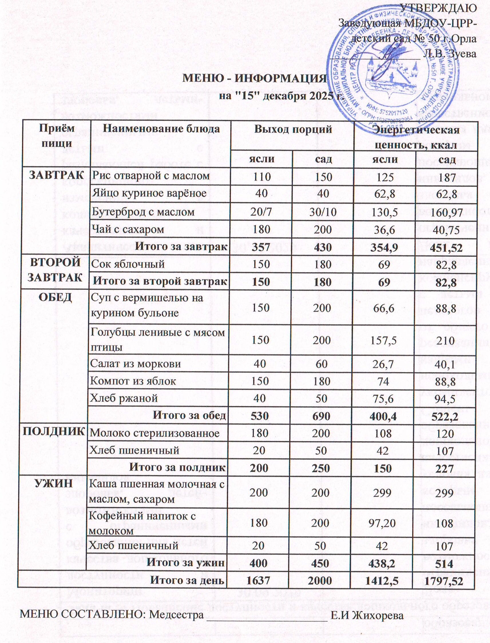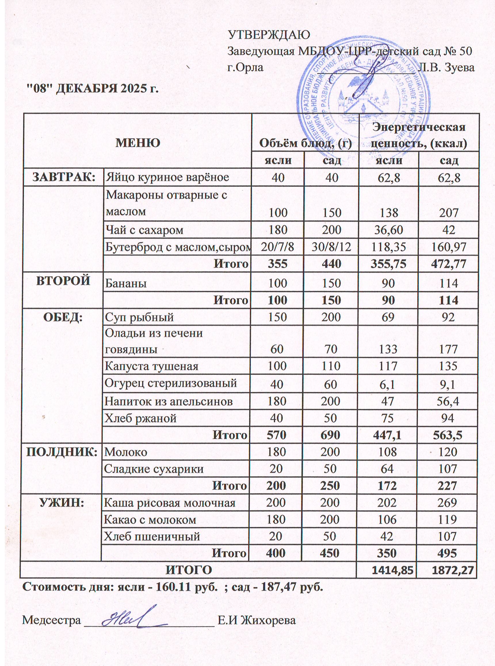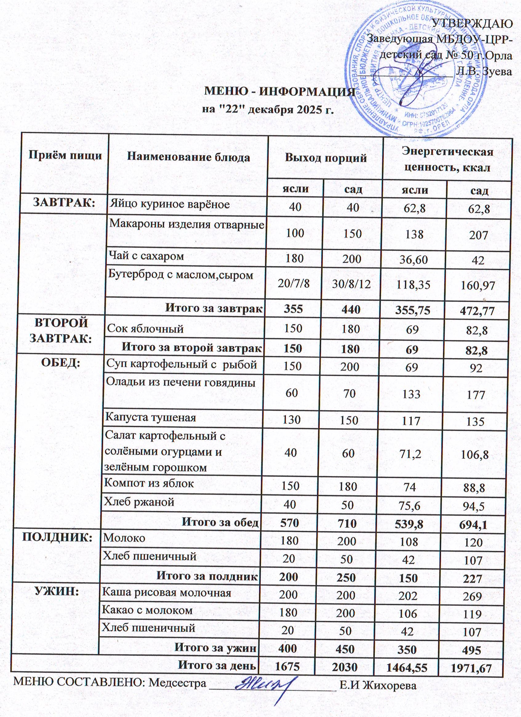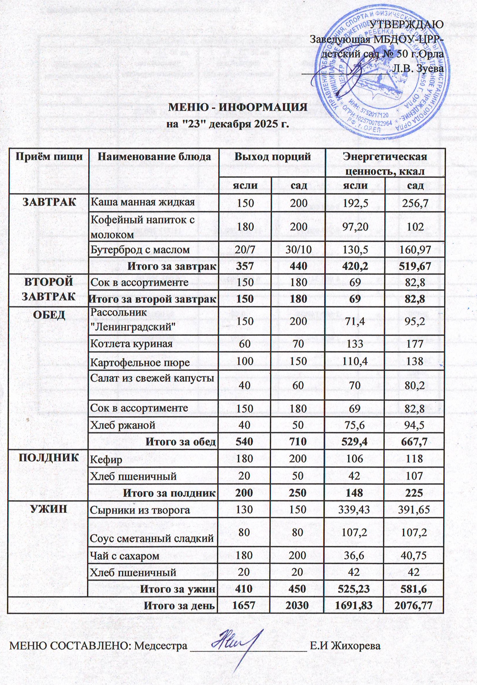 МЕНЮ декабрь: