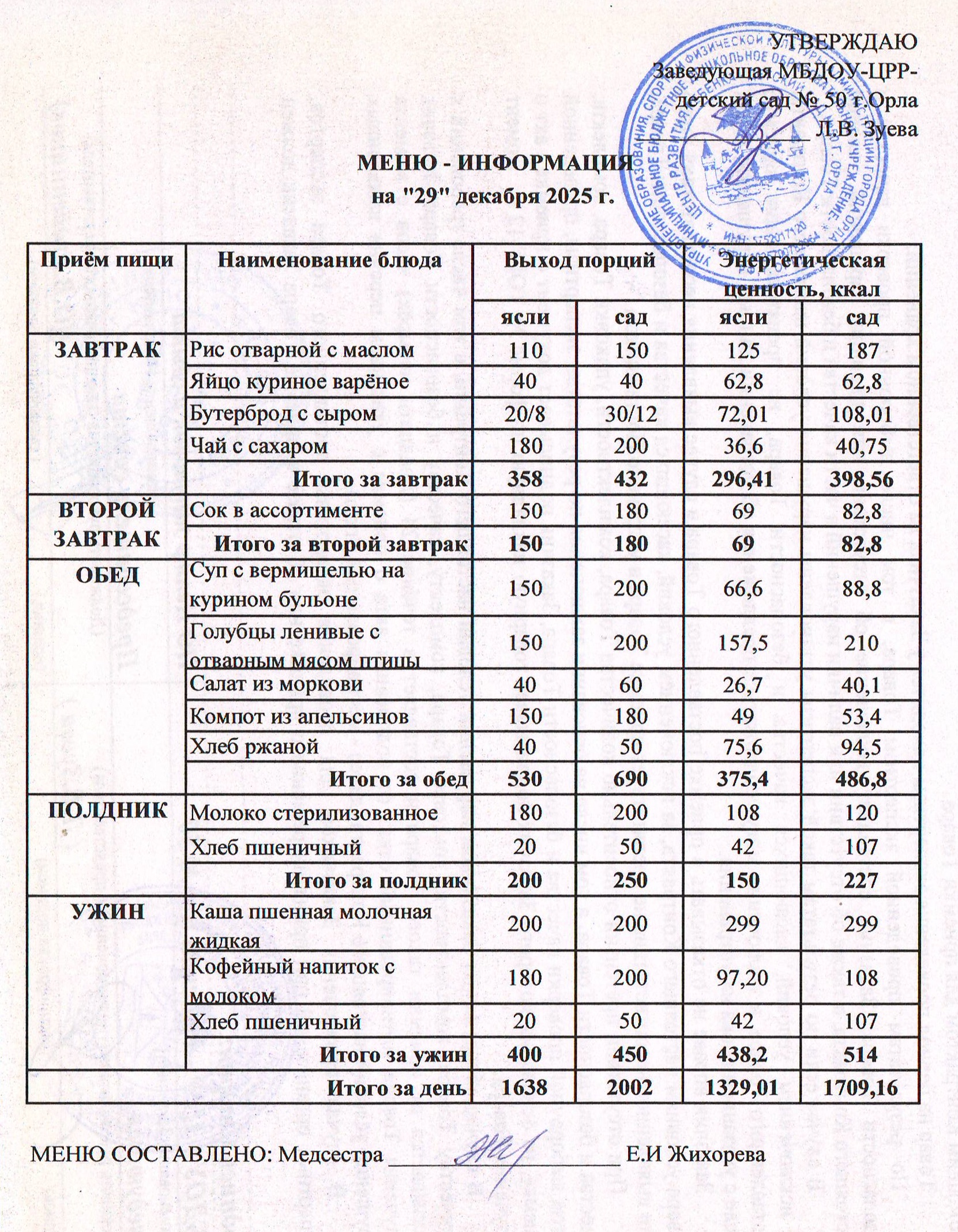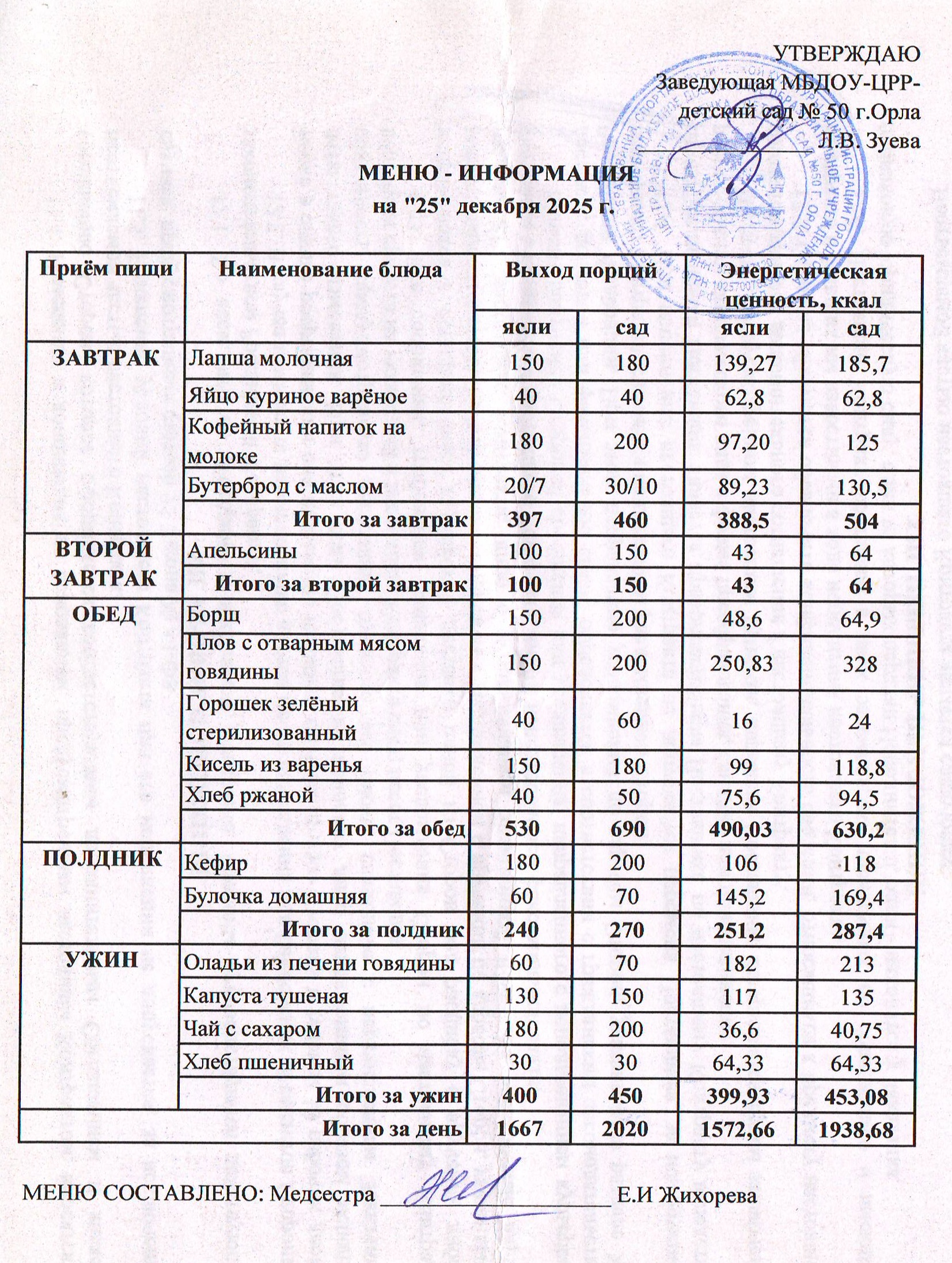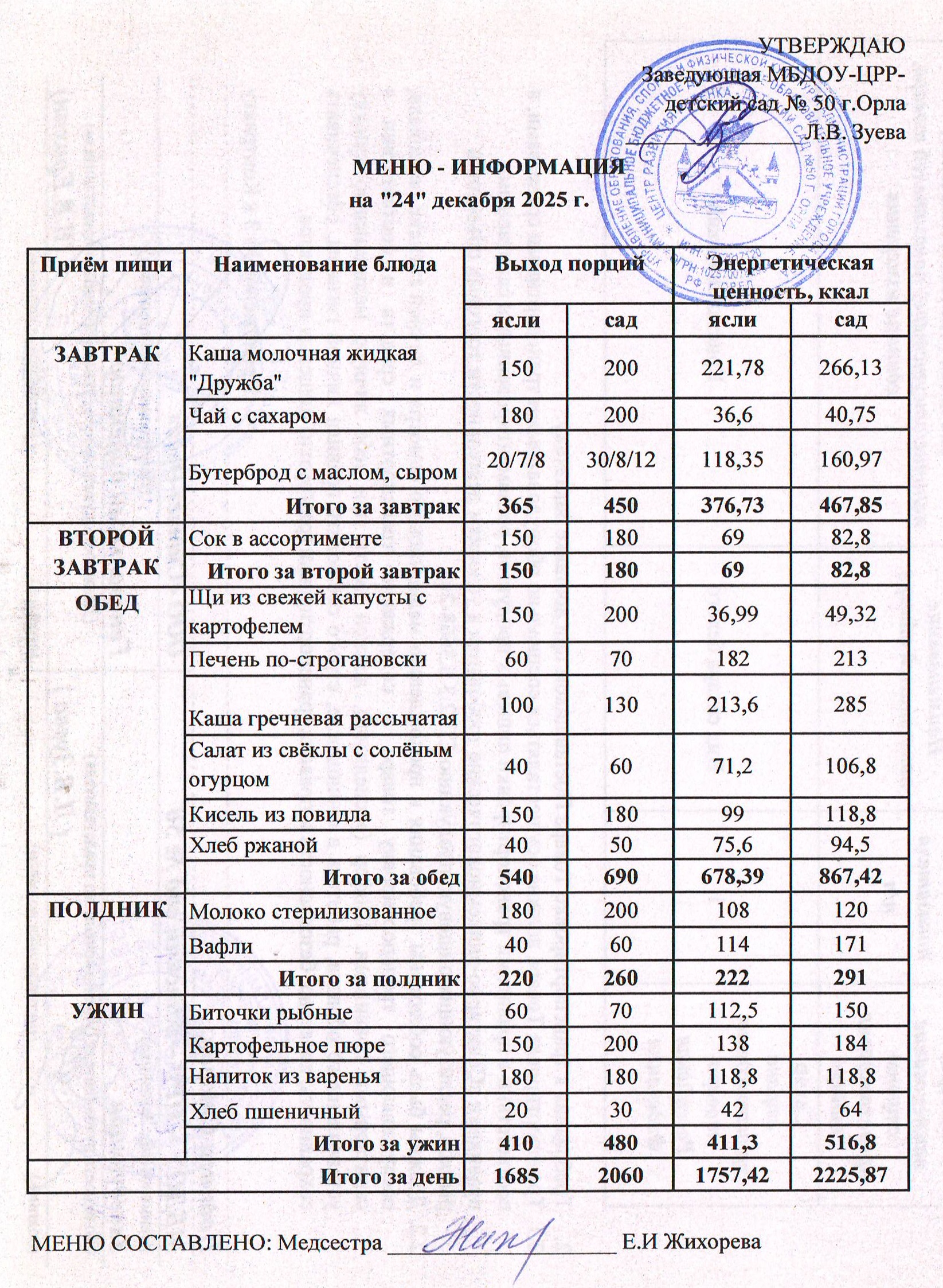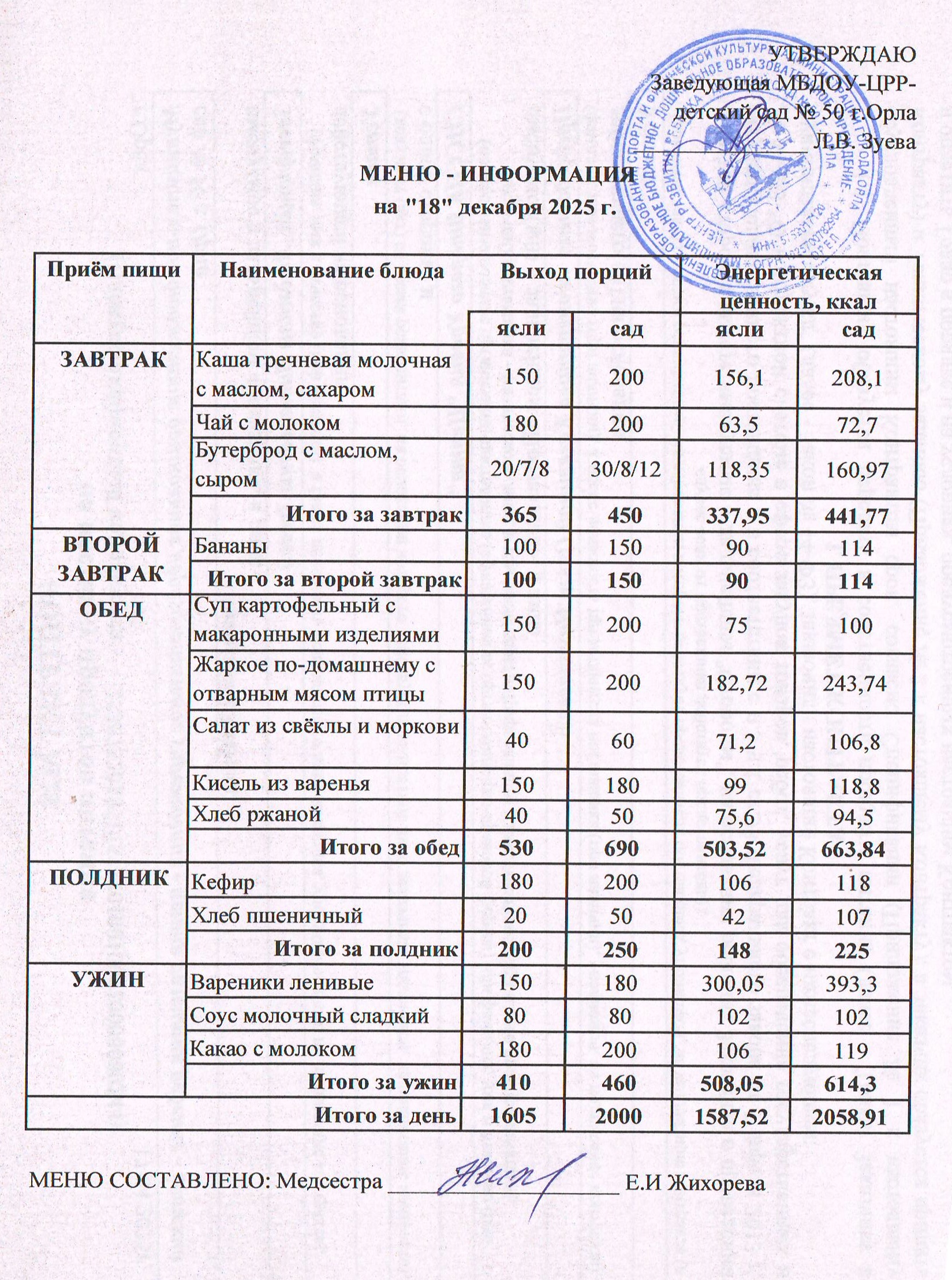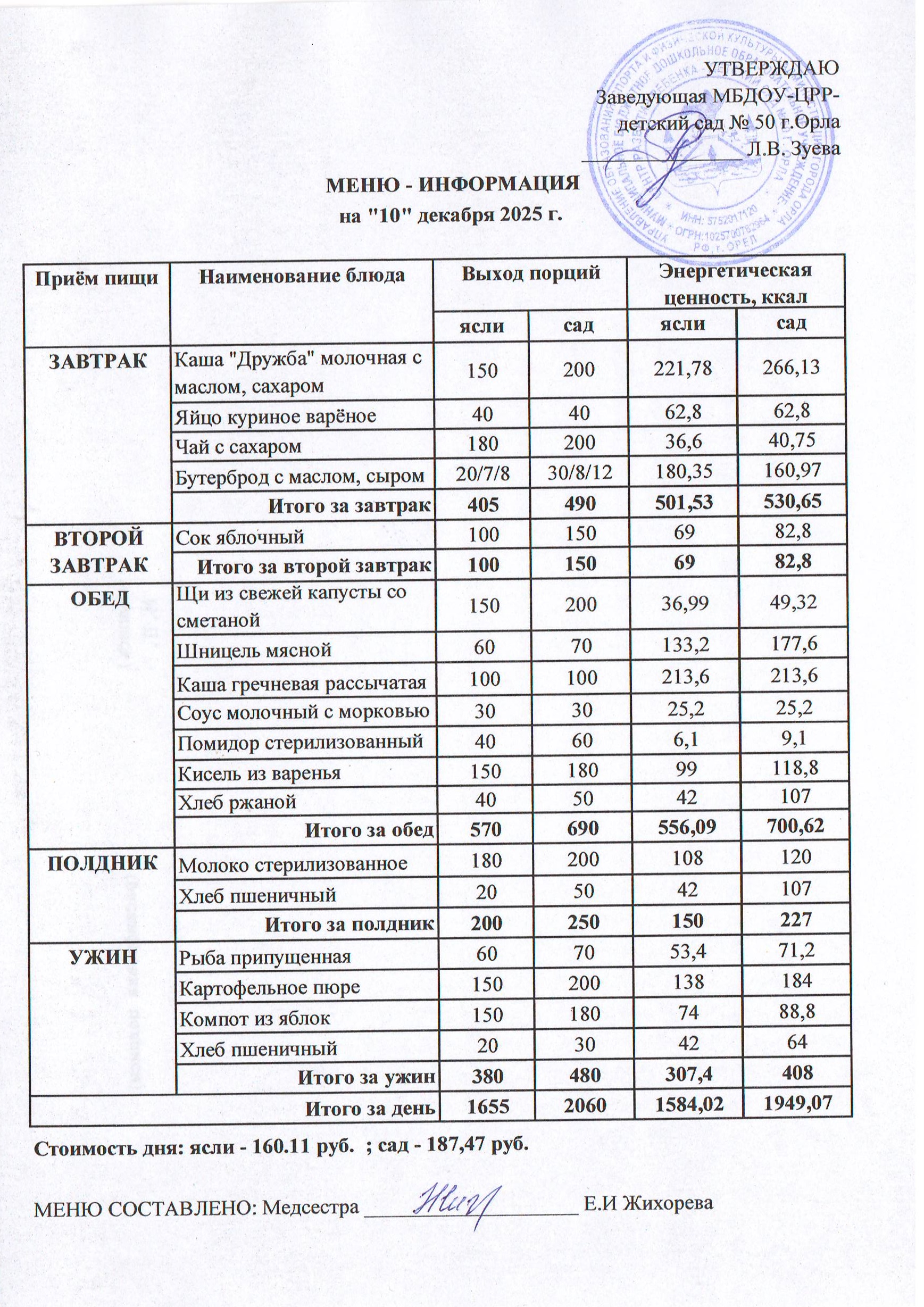МЕНЮ декабрь: