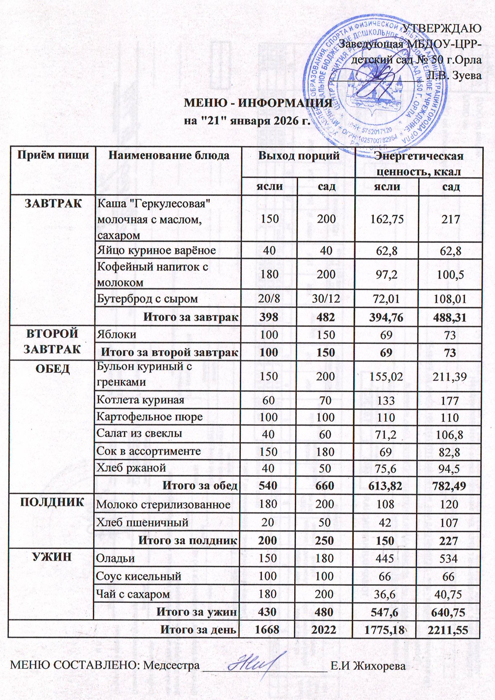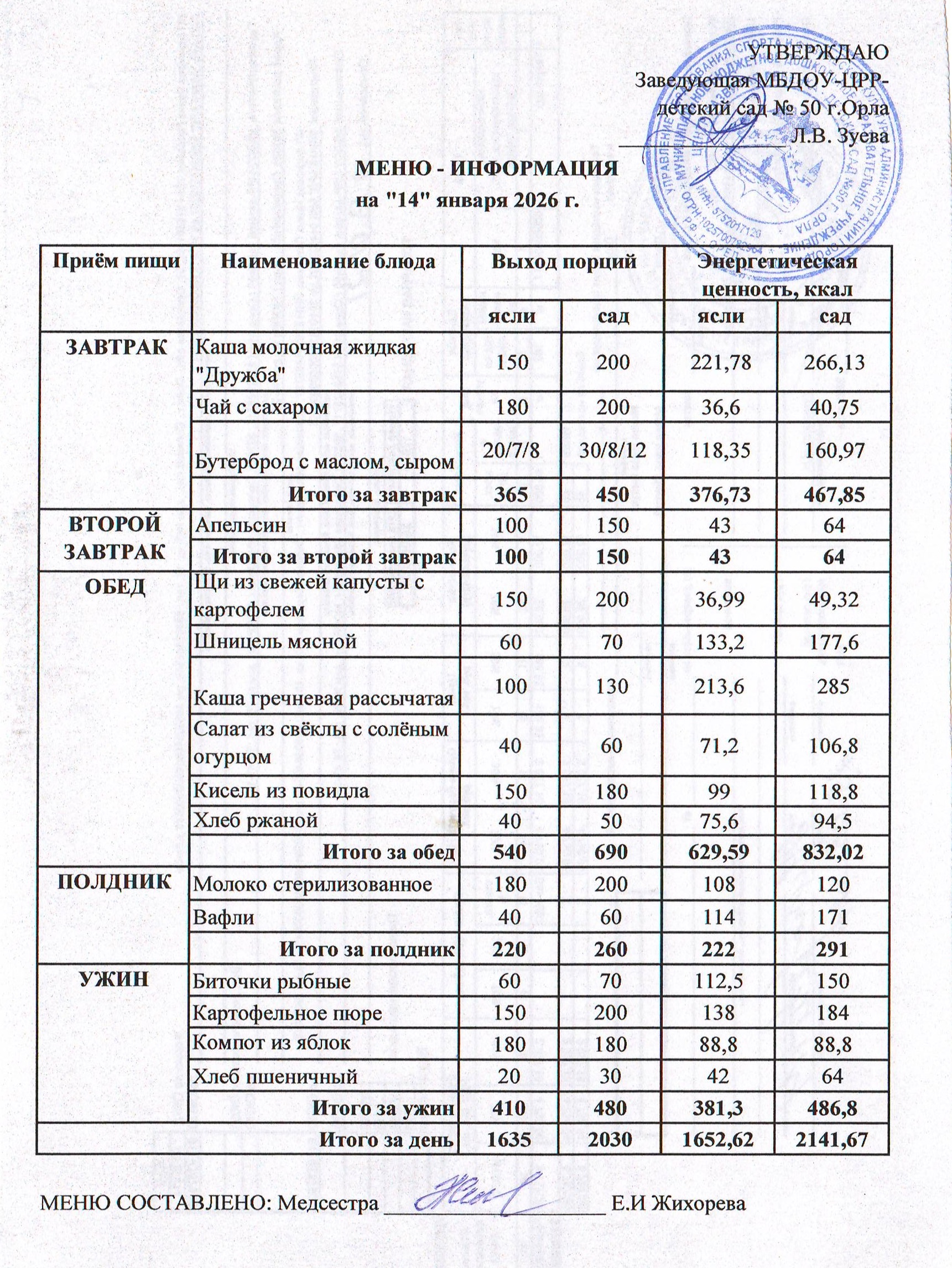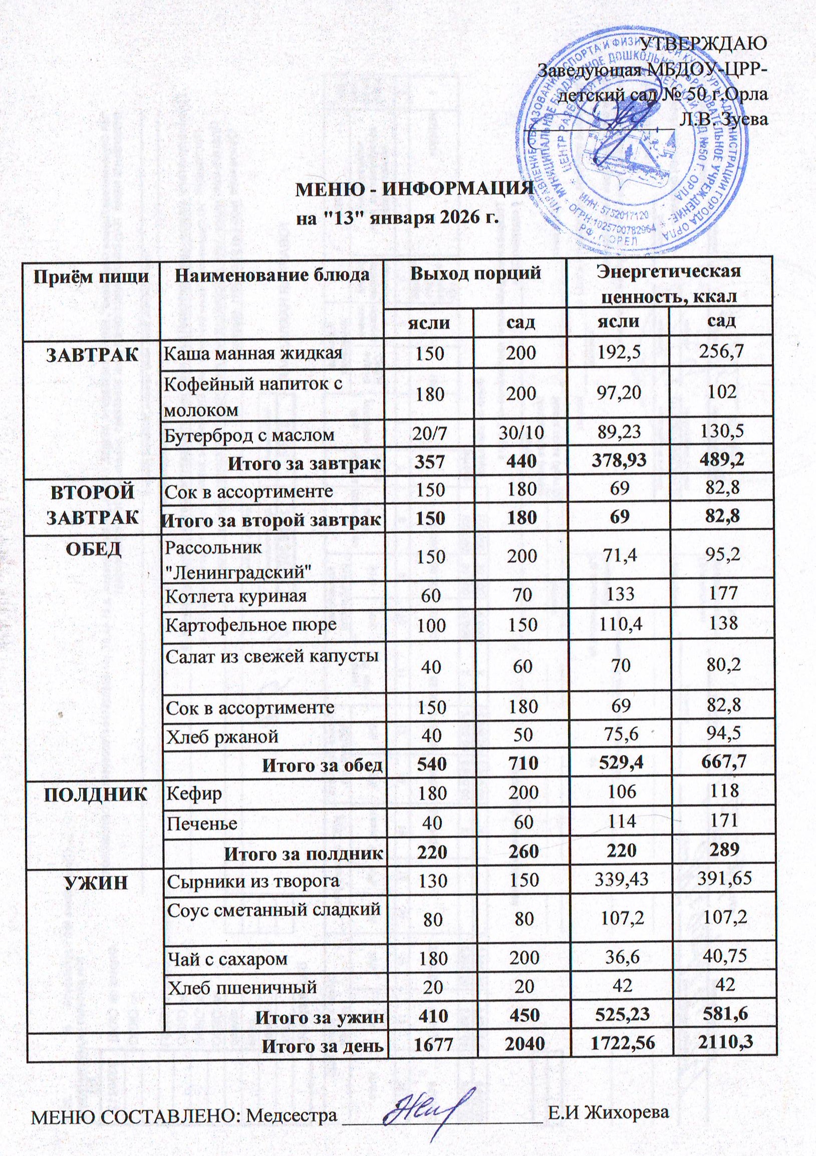 МЕНЮ январь: