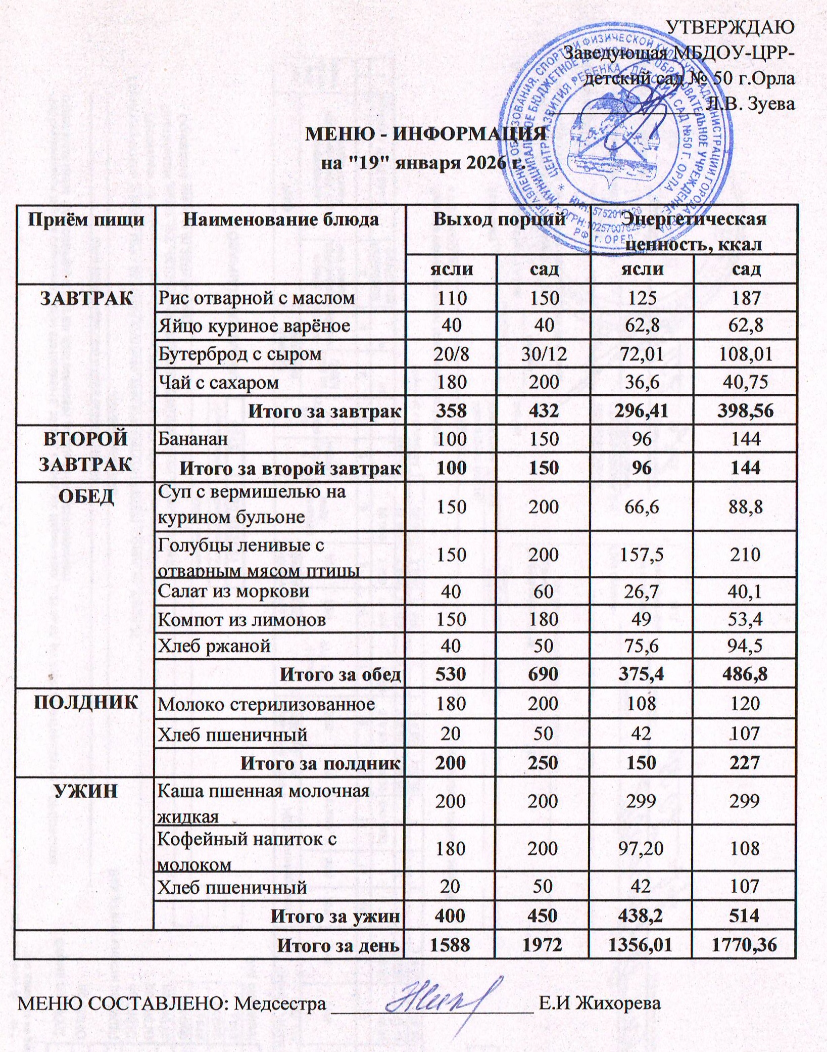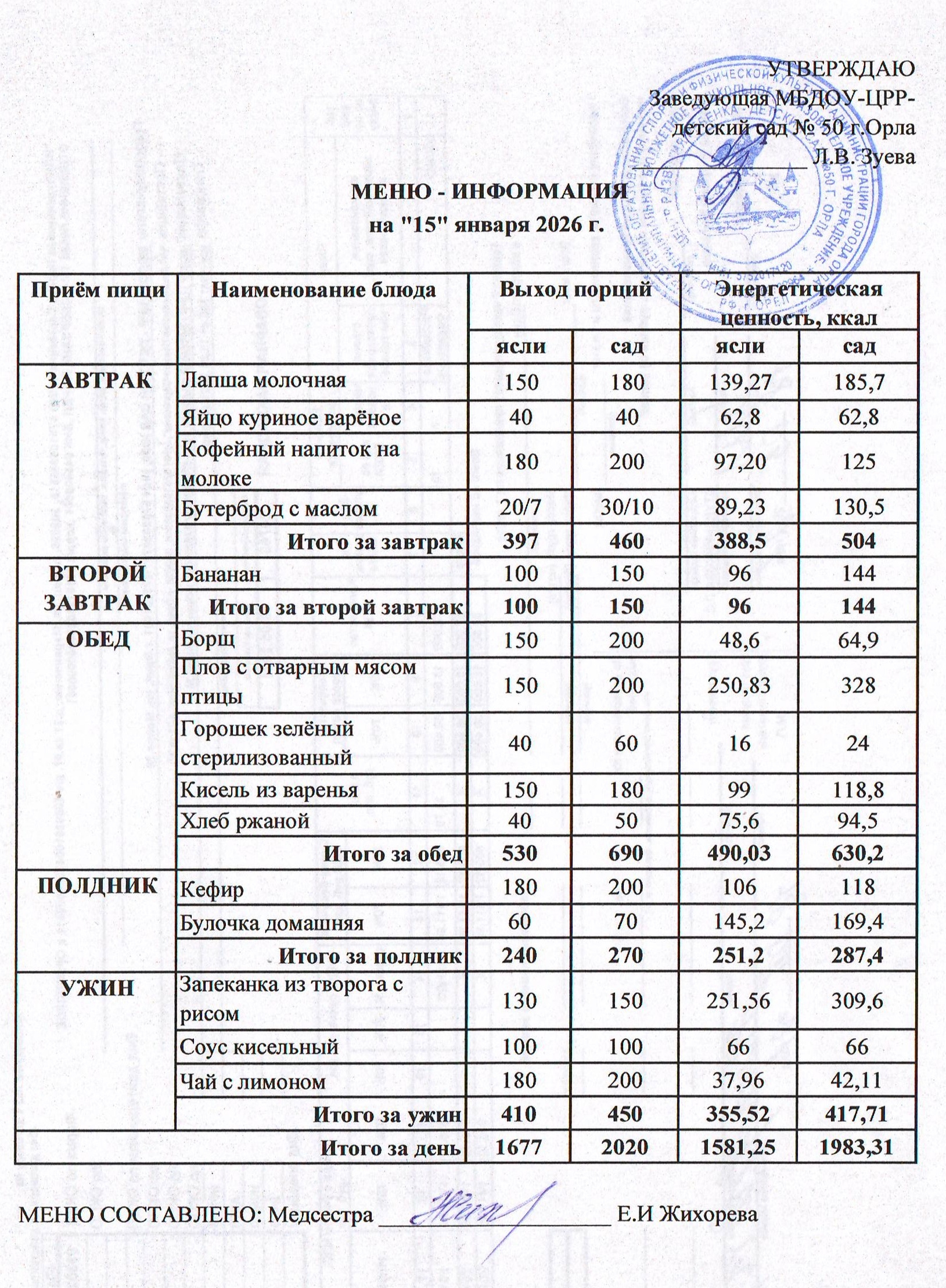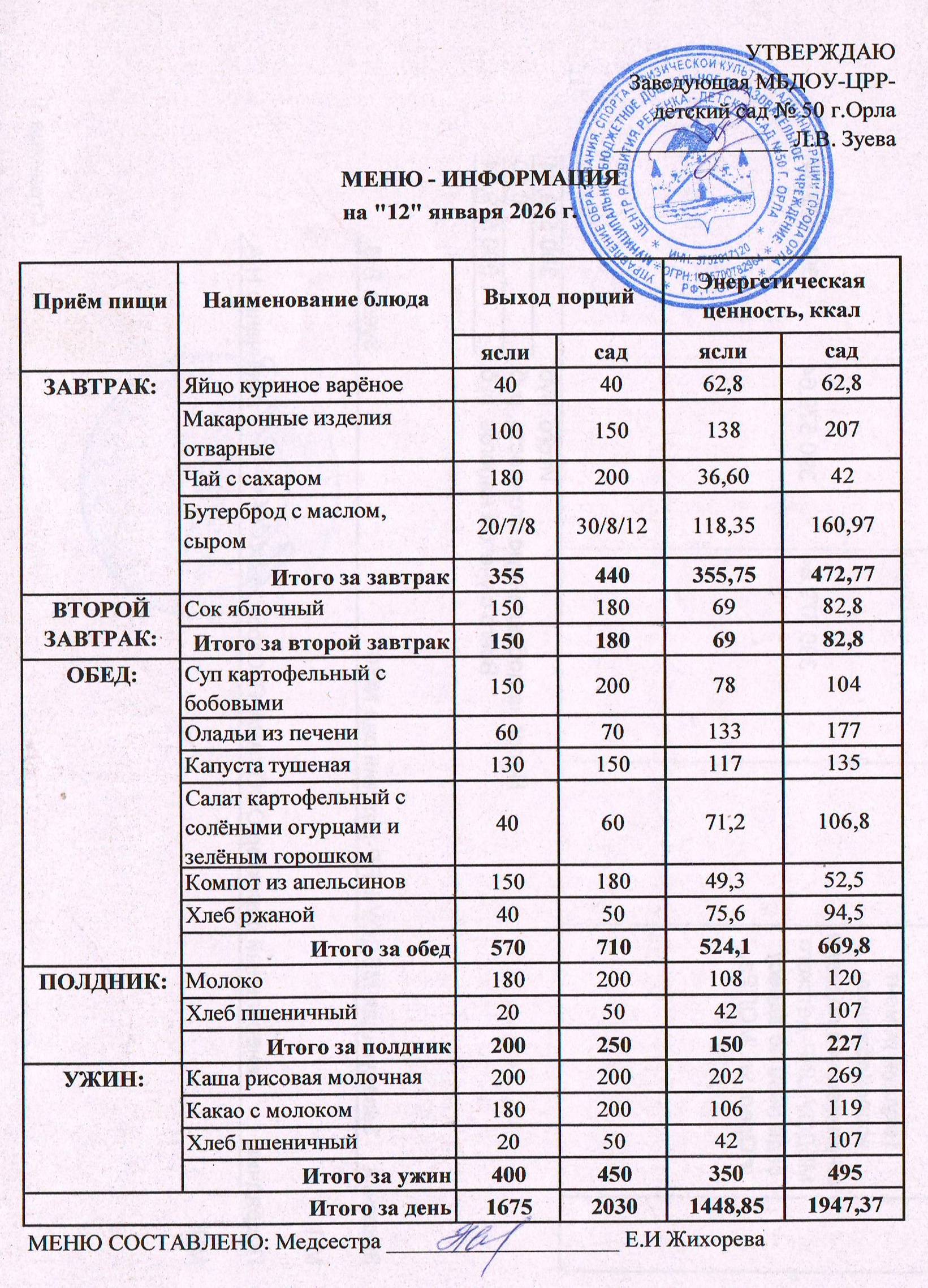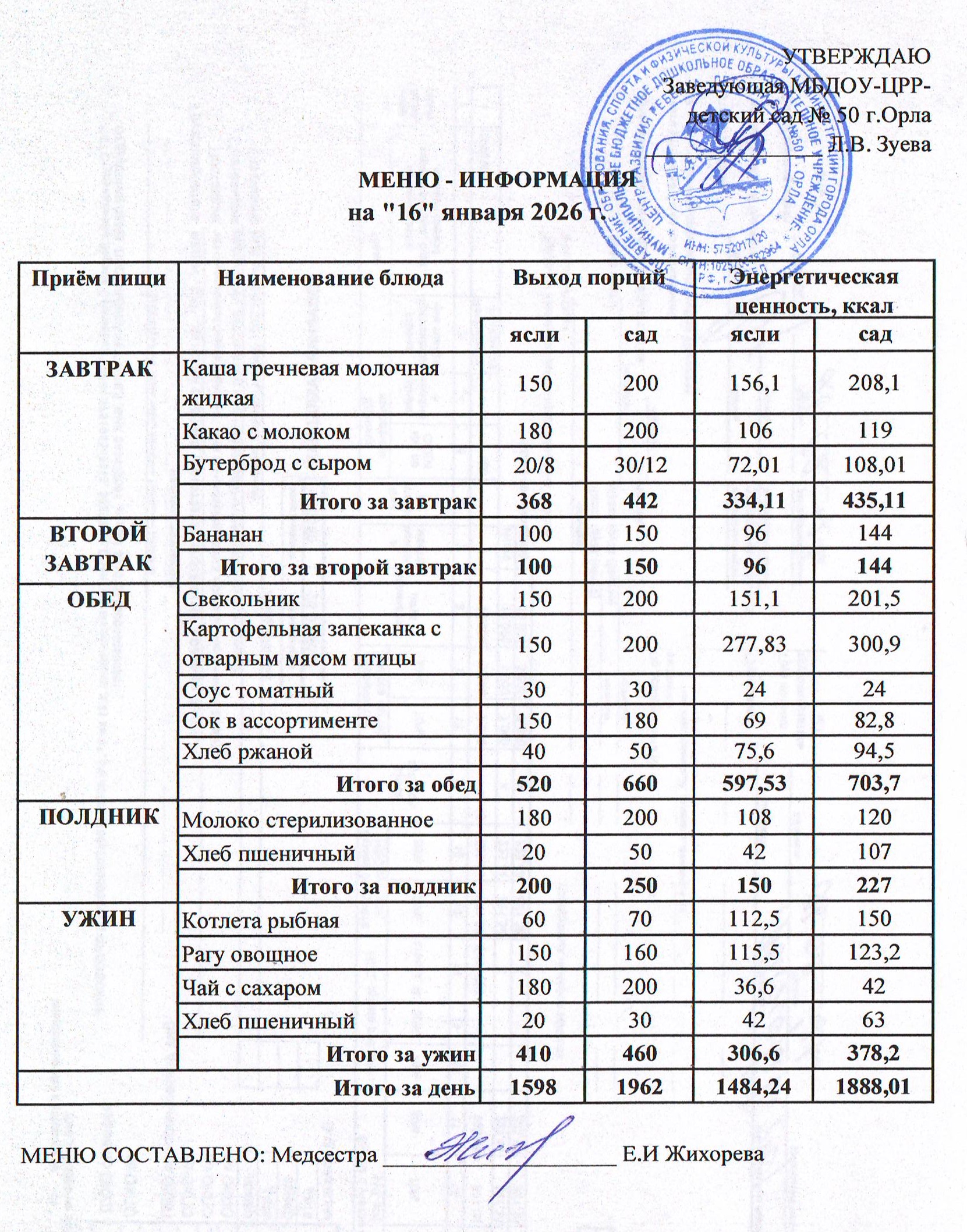 МЕНЮ январь: