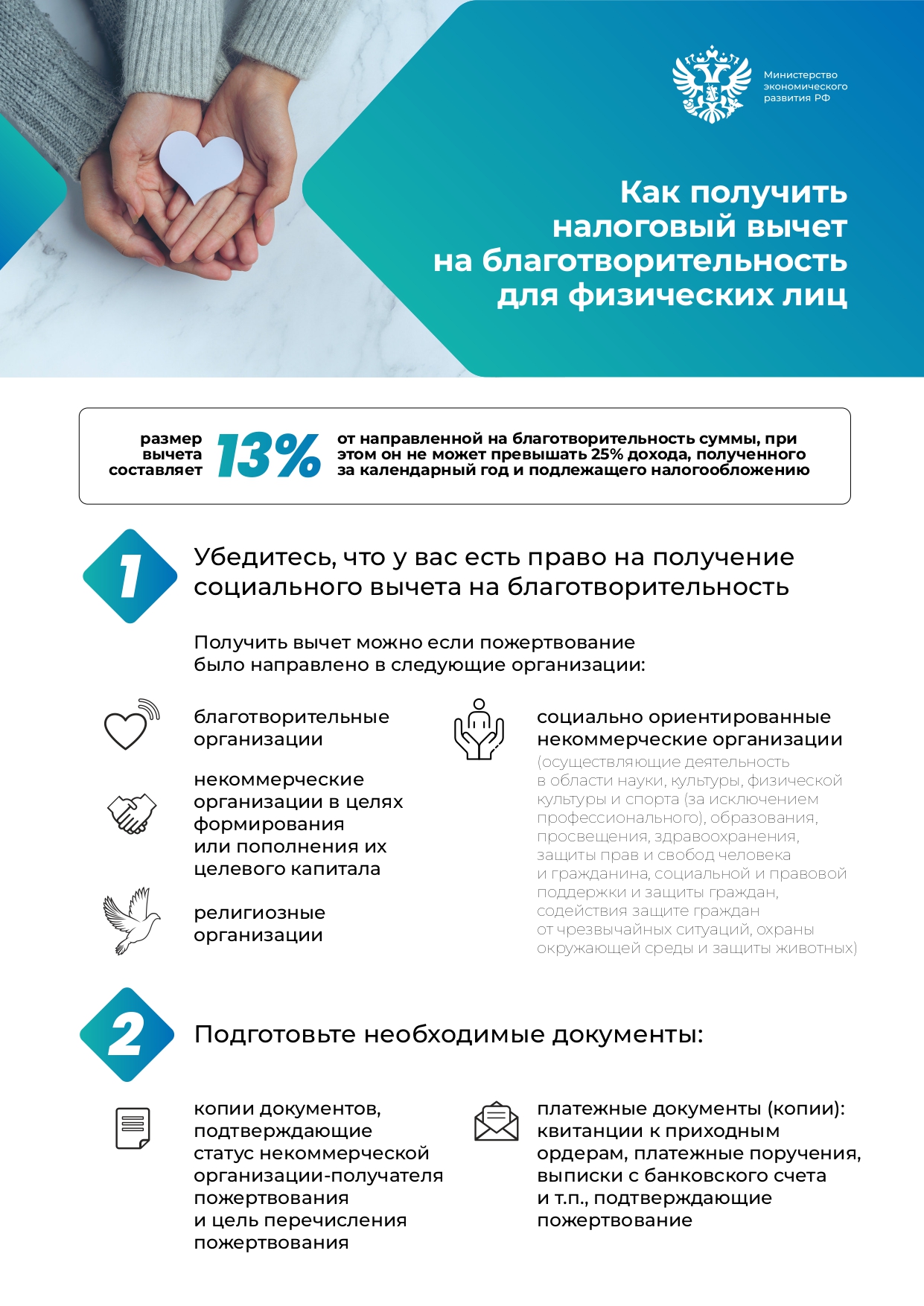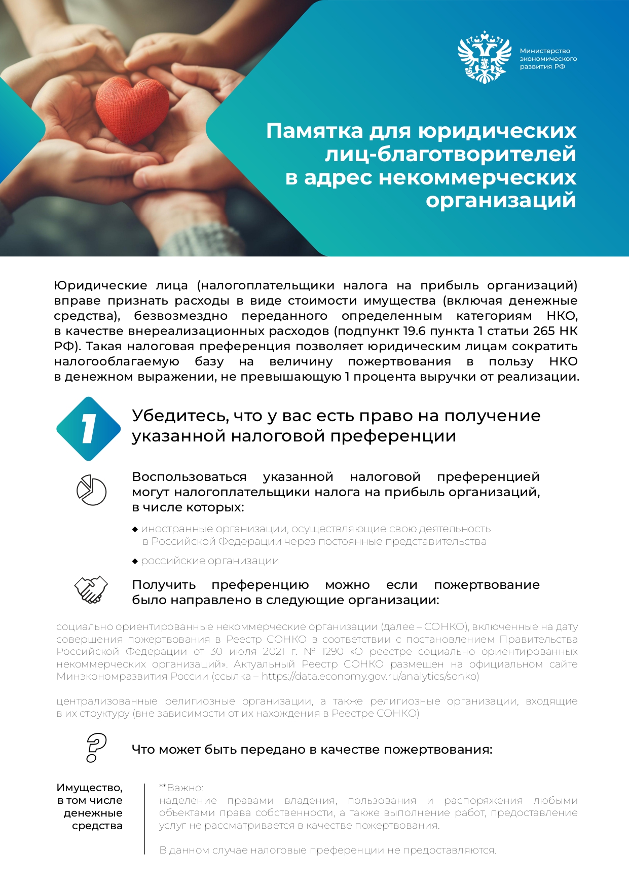 Информация о возможности получения налоговых преференций при осуществлении благотворительных пожертвований Министерства экономического развития РФ